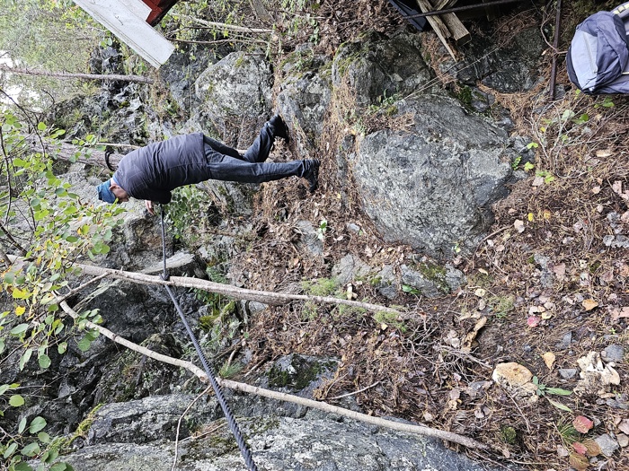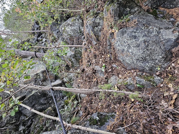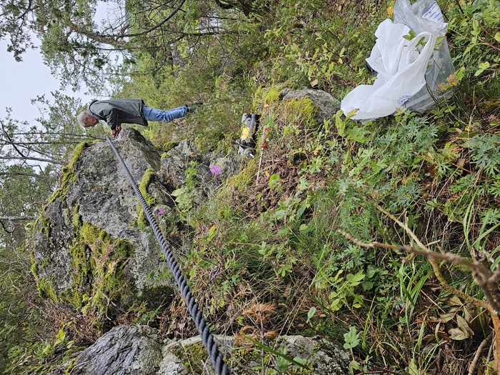 I dag fikk FV sikret en bratt passasje rett nord for Åsen fritidseiendom i Åsebukta. Selv om den som er på tur har ansvar for egen sikkerhet, er det viktig for tilrettelegger å redusere risiko der man kan. FV sørget i dag for at tau sikringen i den bratte skråningen sørger for en tryggere ferdsel i dette området.